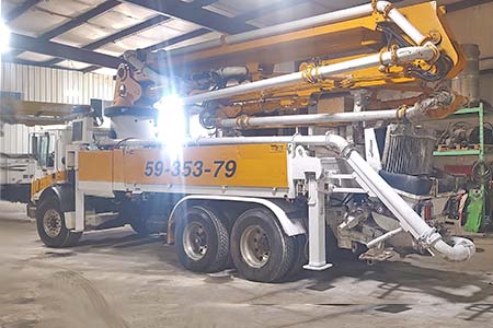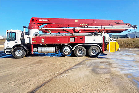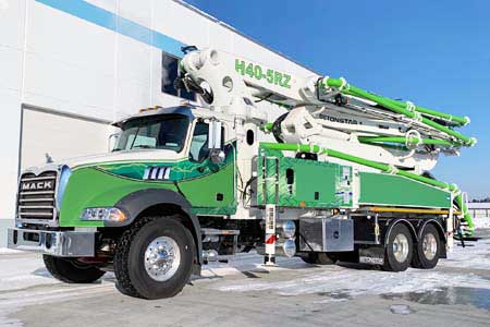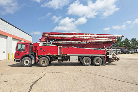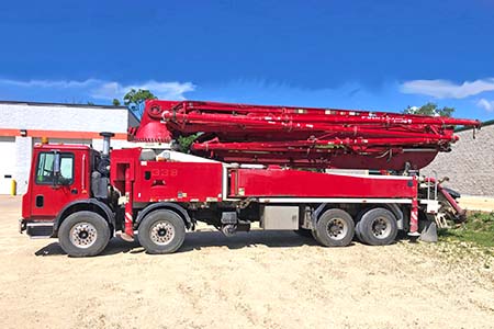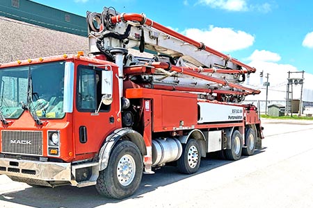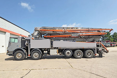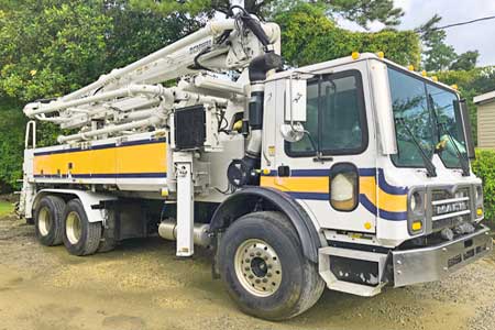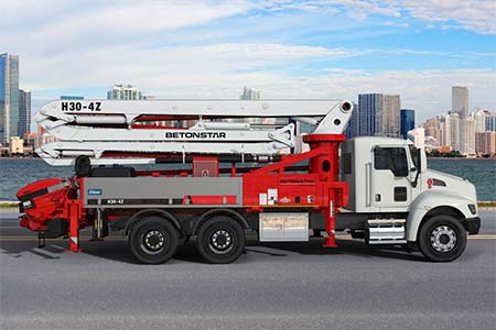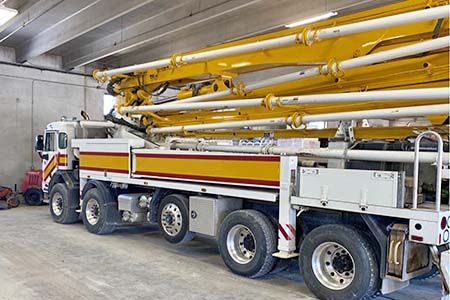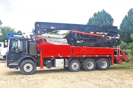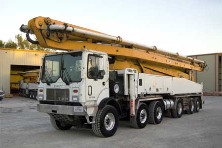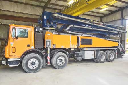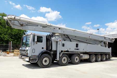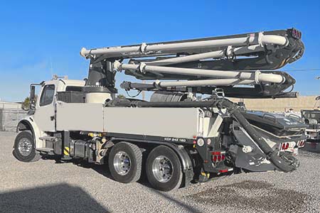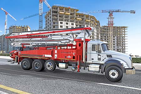 Boom pumps are truck-mounted concrete pumps with multi-section folding booms that can reach more than 100-meters. They pump concrete at a controlled rate, precisely where it is needed in areas inaccessible to concrete trucks and thereby drastically reduce the cost of labor and speed up construction.