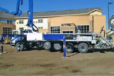 Because of their reach and maneuverabilty, boom pumps have all but replaced cranes with buckets as the equipment of choice for placing concrete on all types of jobs. Pumping concrete with booms pumps is by far the most common and efficient method for many types of low and medium height building projects. |