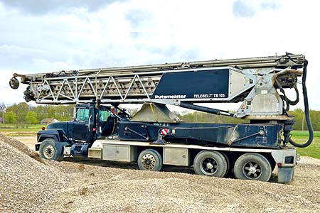 Putzmeister Telebelts are truck-mounted telescopic conveyors that place concrete, aggregate, sand, stone, gravel and earth backfill.
