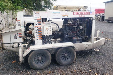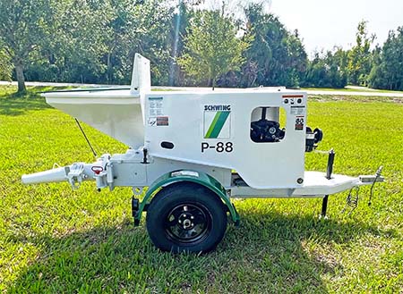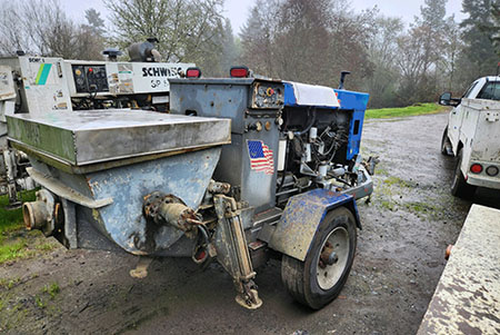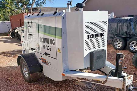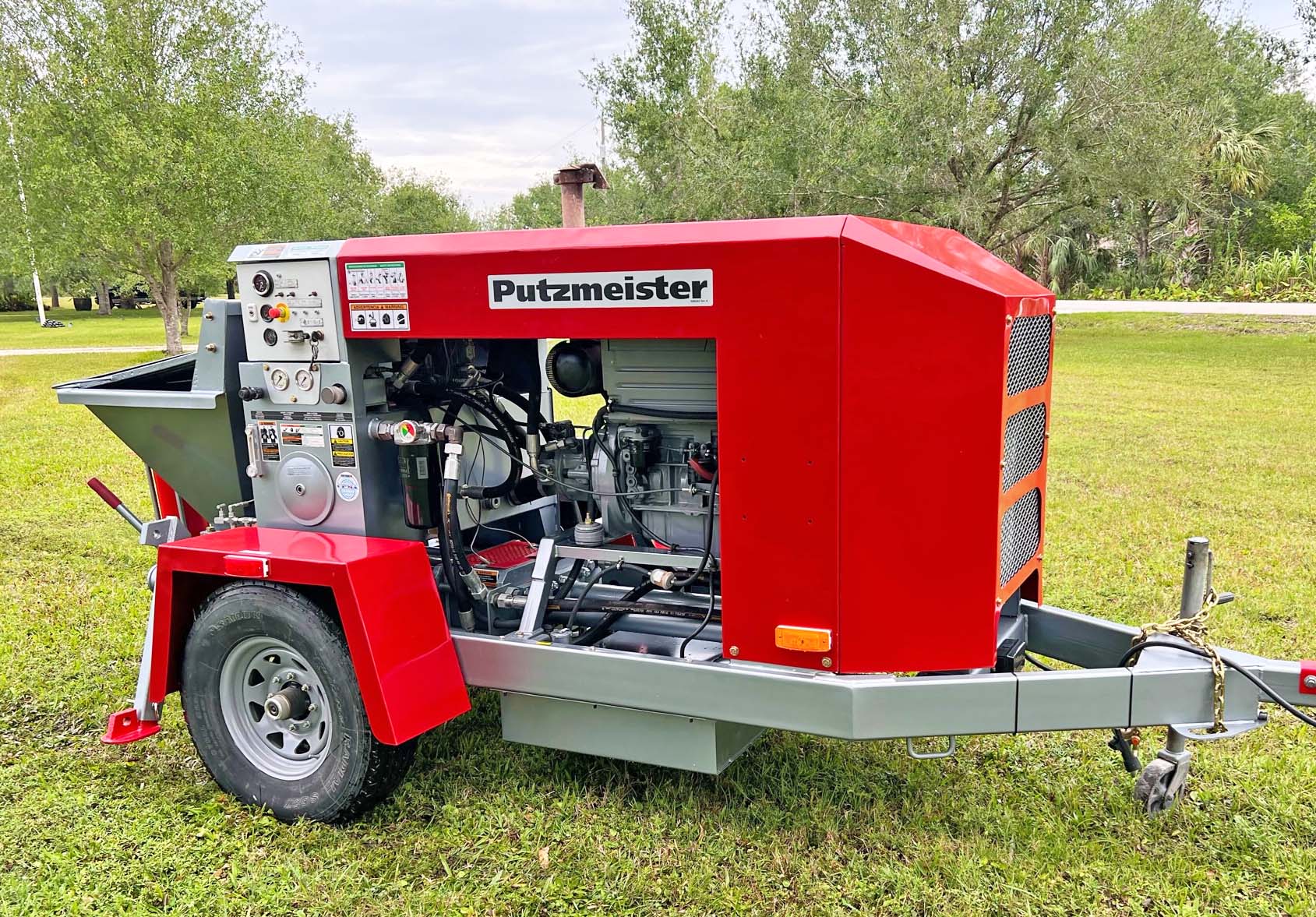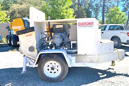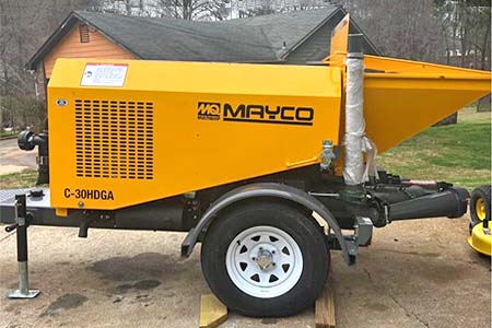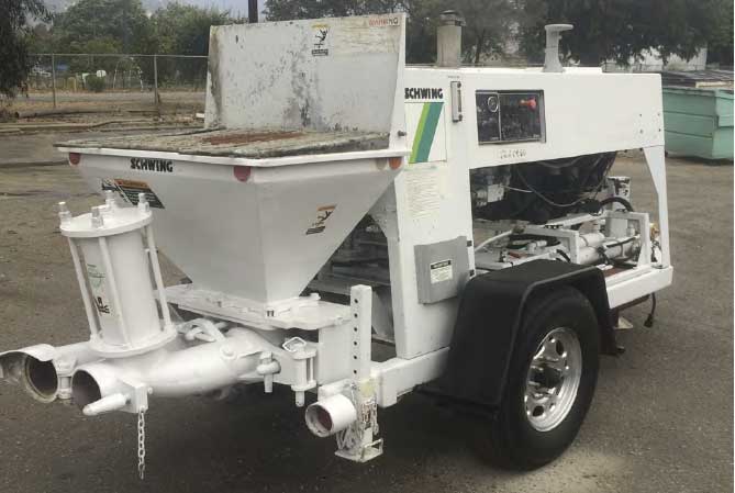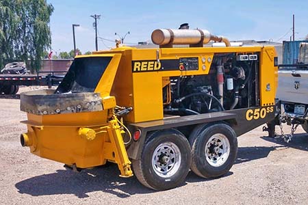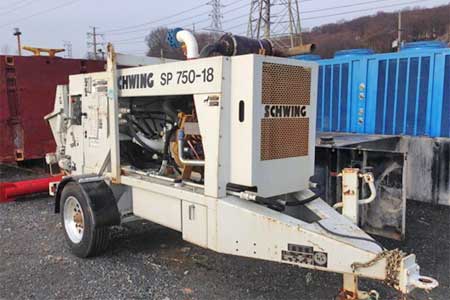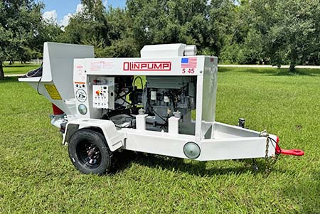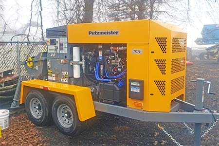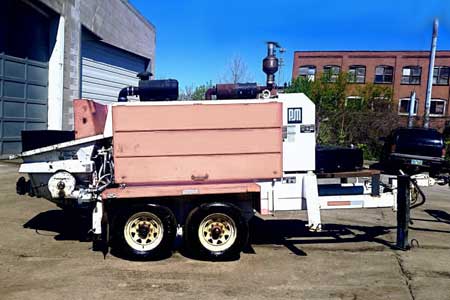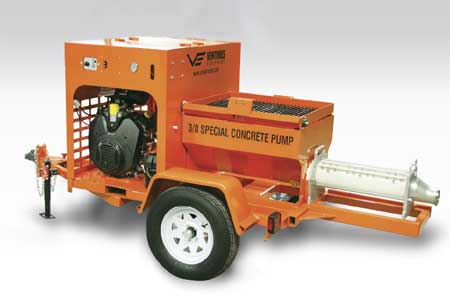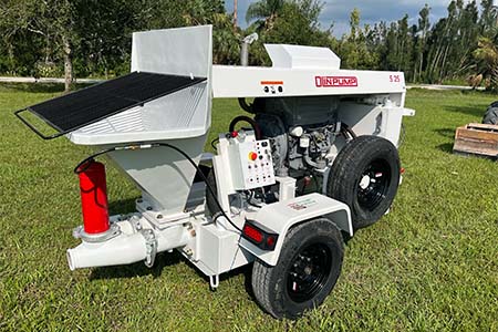 Trailer pumps are wheel-mounted units that must be pulled behind a truck. They are also called line pumps because they pump various mixes through steel pipe and flexible hose or "lines". These pumps come in a wide range of sizes from quite small and portable to very large and powerful, high-production machines.