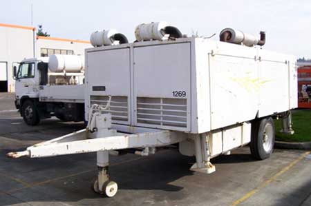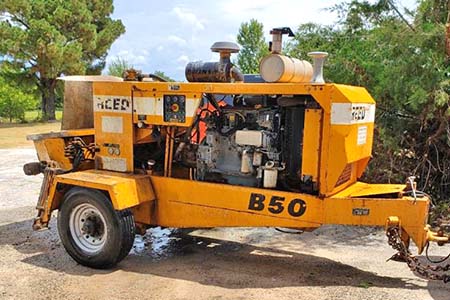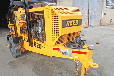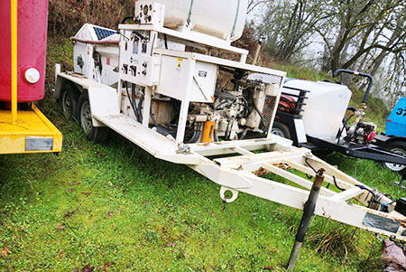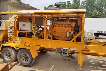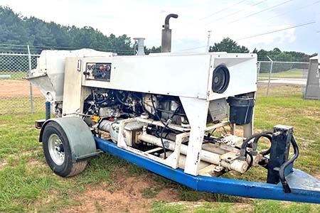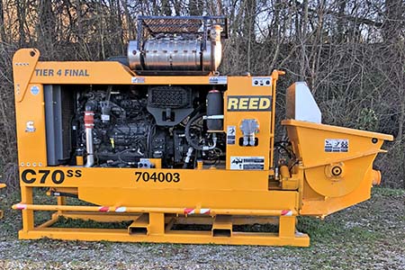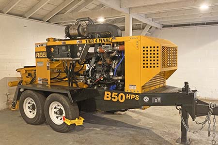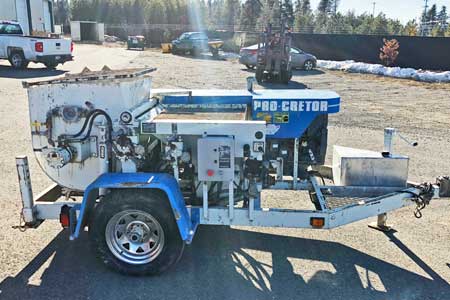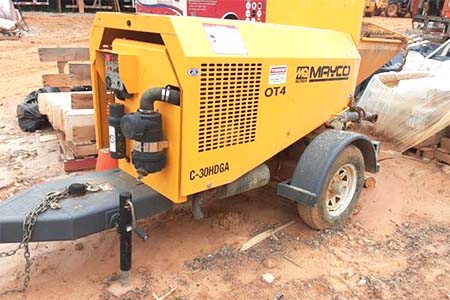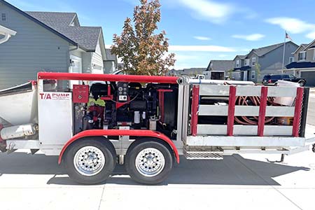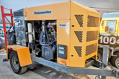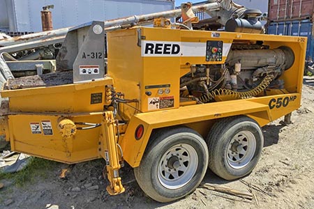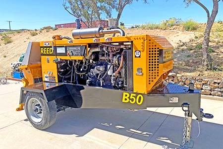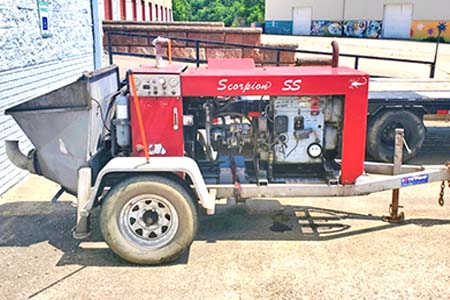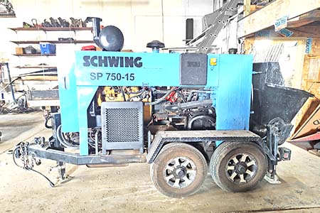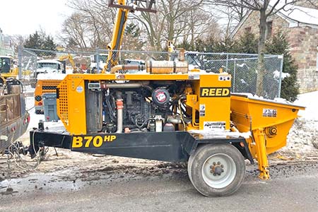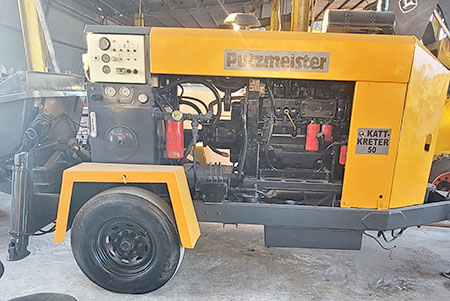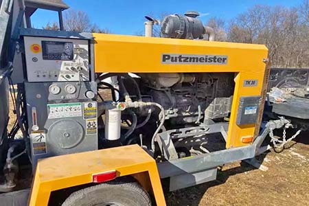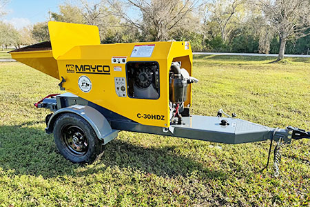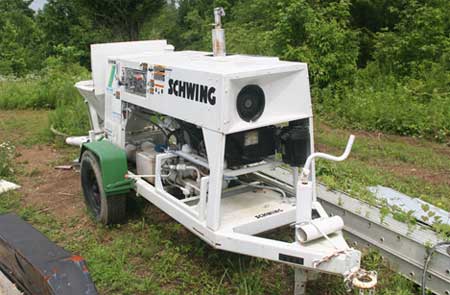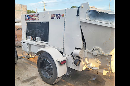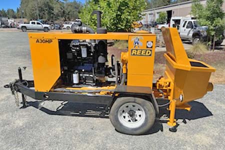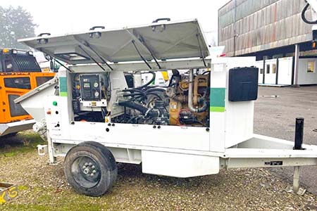Trailer pumps are wheel-mounted units that must be pulled behind a truck. They are also called line pumps because they pump various mixes through steel pipe and flexible hose or "lines". These pumps come in a wide range of sizes from quite small and portable to very large and powerful, high-production machines.